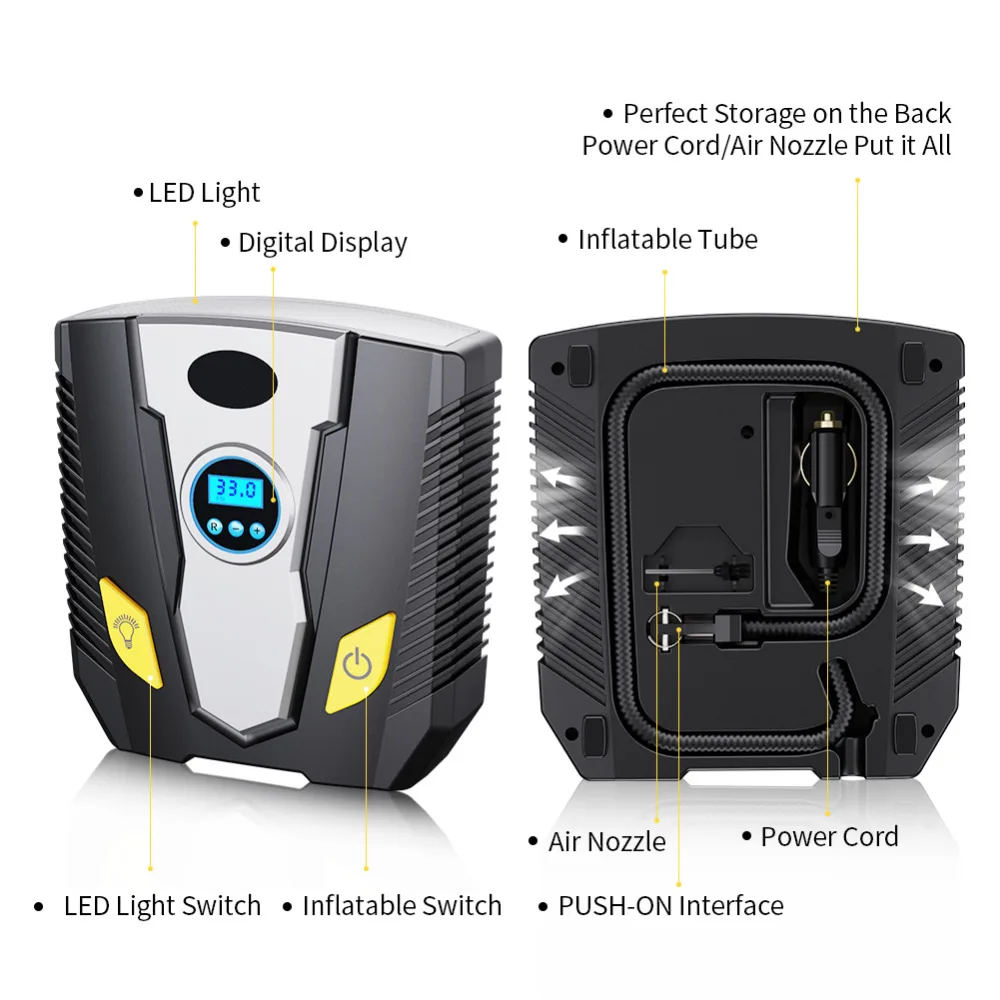 Digital Tire Inflator DC 12 V Car Portable Electric Air Compressor Pointer Pump 150 PSI Car Air Compressor for Car Motorcycles