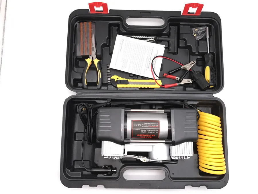 Double Cylinder 12v 60L/min 150PSI Inflatable Pump Car Air Compressor with full set Suitcase toolbox
