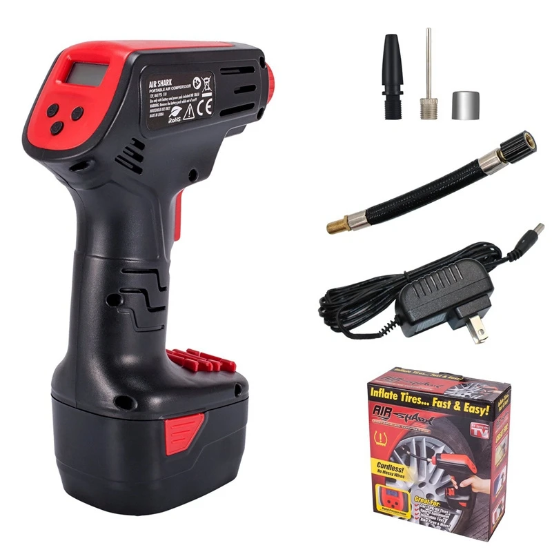 Aliexpress has Car Cordless Air Compressor DC 12V Rechargeable Electric Tyre Inflatable Pump Portable Digital Tire Inflator EU US Plug for just $57.50 shipped.